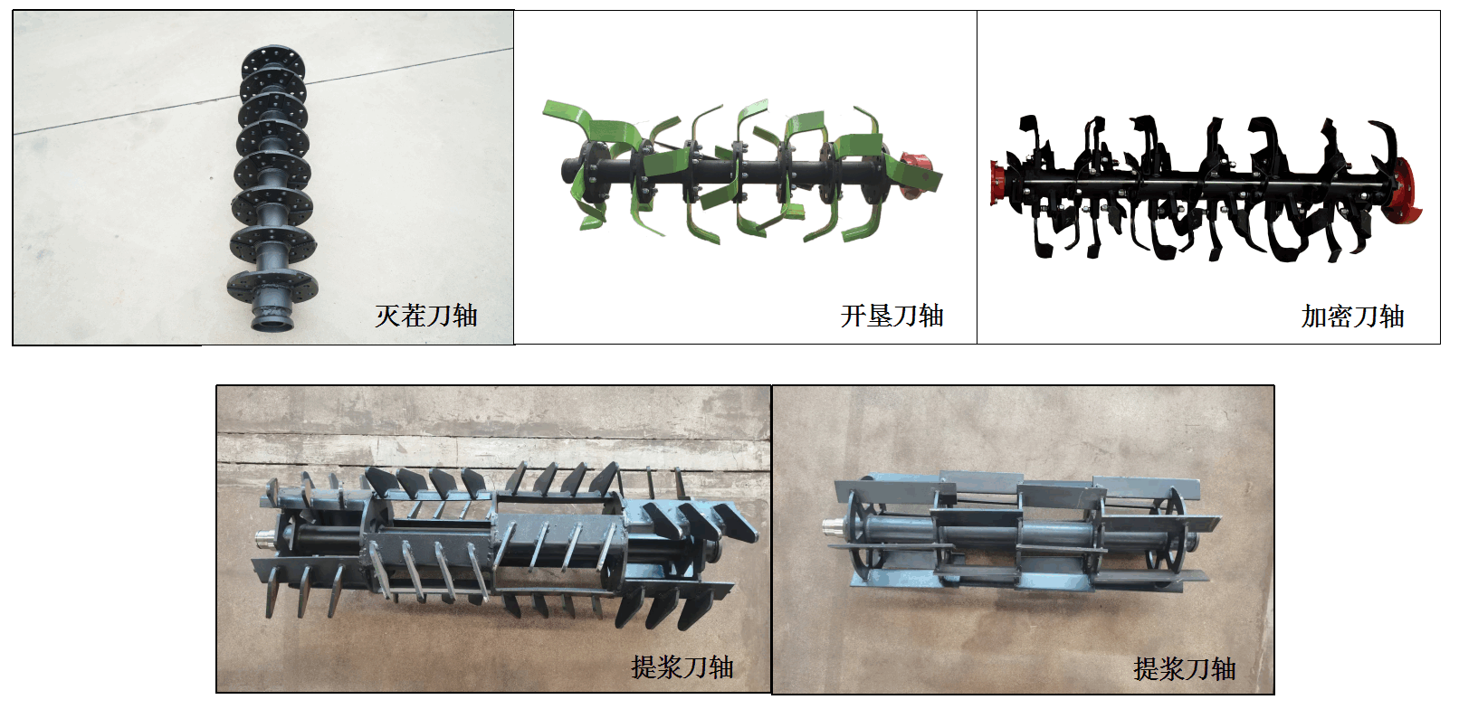 可根据水旱田及农艺需要配制:加密刀轴、提浆刀轴、开垦刀轴、灭茬刀轴