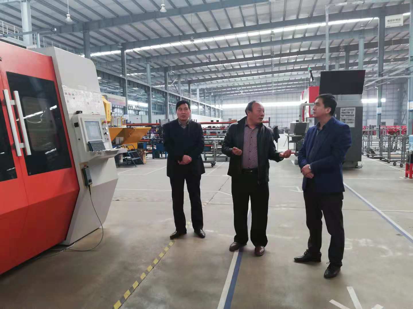 之后调研组一行又来到钣金生产线,郭总详细的讲解了激光切割及数控折弯两个机组的制造工艺,李军副主席表示这些硬件设备颠覆了我们对传统制造业的认识,亚澳智能制造的互联网+制造理念很超前,对未来企业的智能制造发展提供了强大基础。