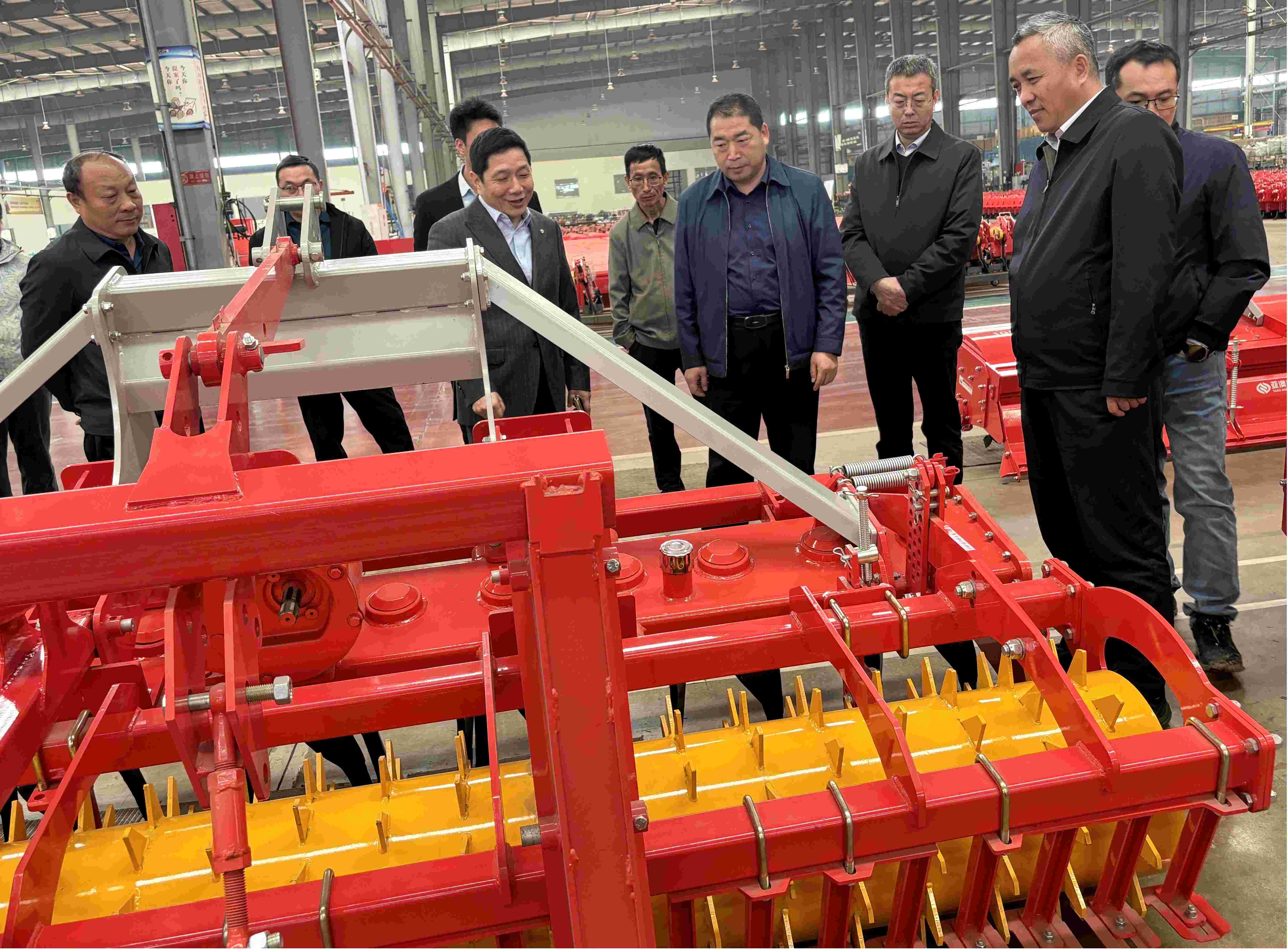 在参观期间,史总就公司的创业成长历程、企业文化、竞争优势、企业发展战略、产品研发体系等做了详细介绍。在pa旗舰厅官网制造现场,领导一行还详细了解玉米精量免耕播种机、气吸式精量播种机、双轴旋耕施肥播种机、动力驱动耙等多款机具的研发、生产情况。