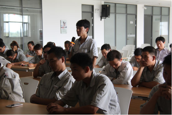 培训中自动焊班组员工石兆及钣金班组史东爱对于个人工伤事件进行了发言,对于工伤后的痛苦和感想也从中进行了总结,提醒大家按制度按标准作业,时刻提防安全防范。