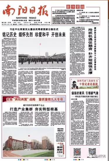 2017年 12月14日,南阳日报头版报道唐河产业发展,我公司榜上有名。以下为报道全文。
