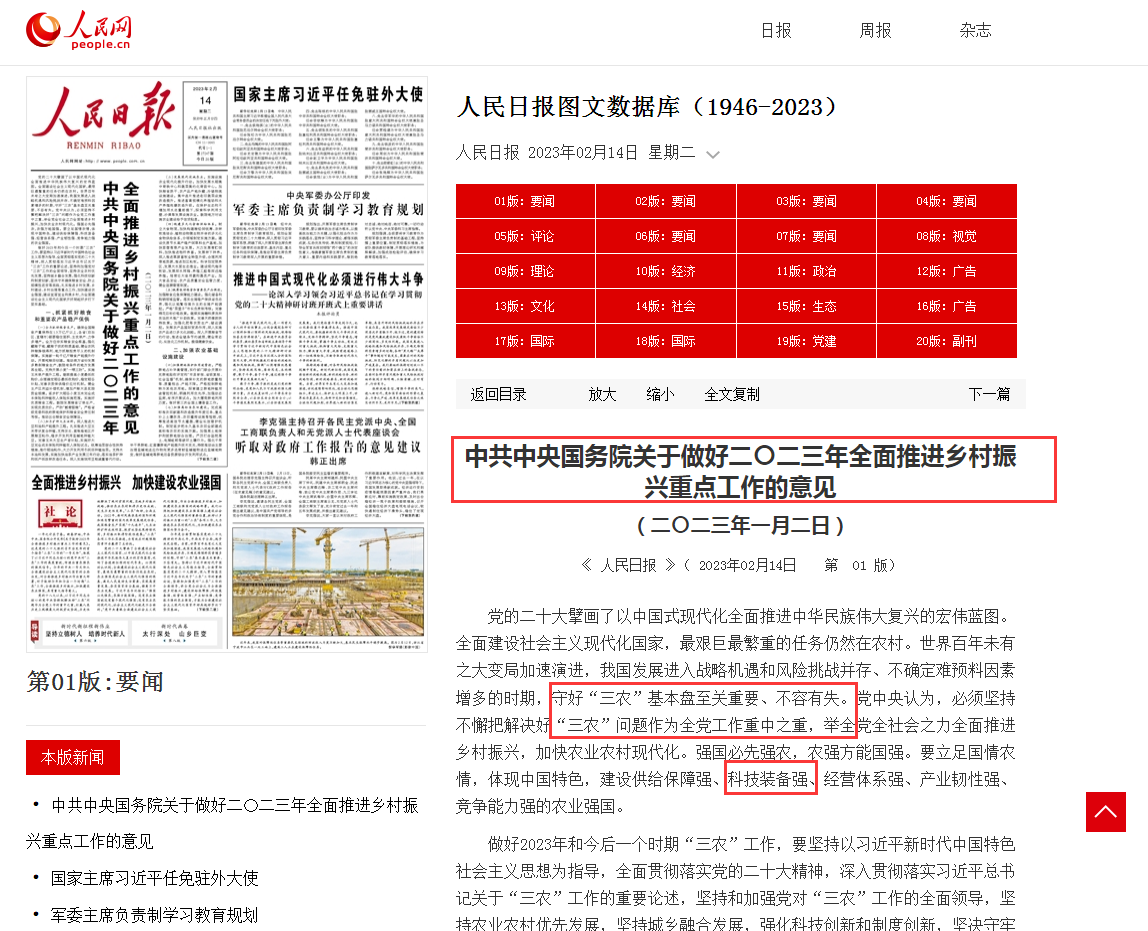 2023年中央一号文件:农机富民强国梦